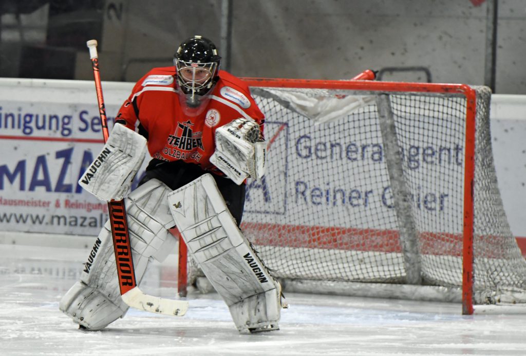 Immer wieder scheiterte Florian Sonnengruber an Filip Grancarov, dem tschechischen Tor-hüter des EHC Mitterteich.