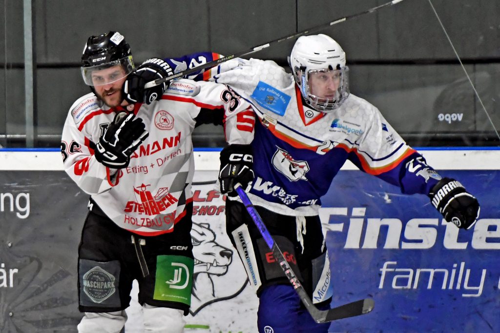 Alles andere als zimperlich: Bad Wörishofens Jonas Schwarzfischer (re.) gegen Patrick Beham (Gebensbach)